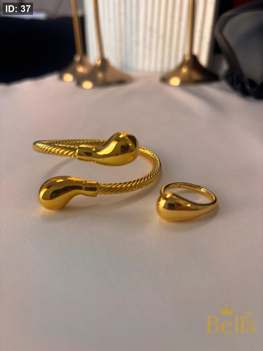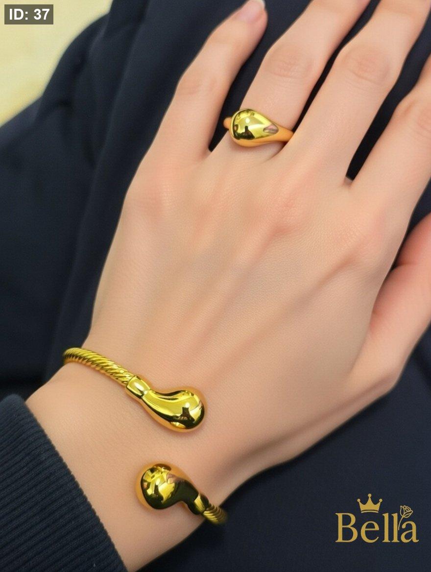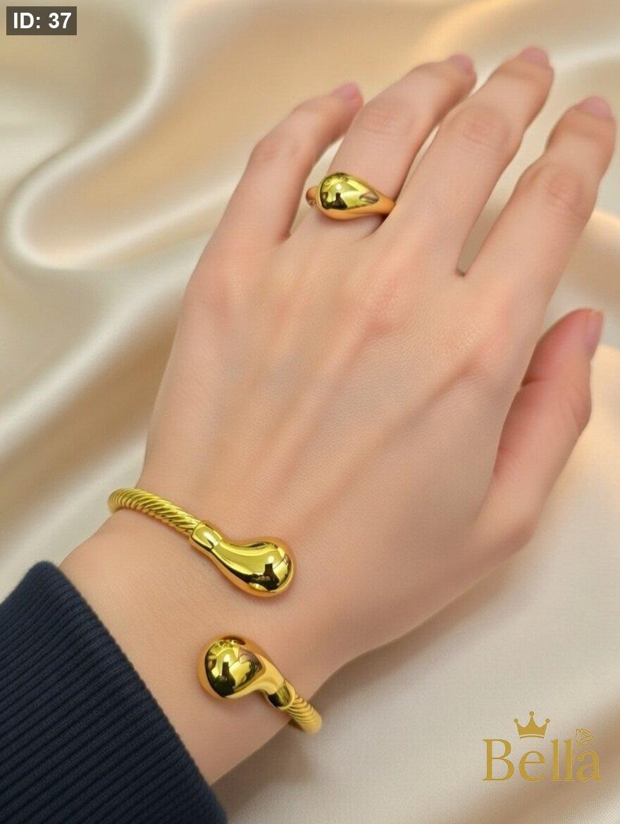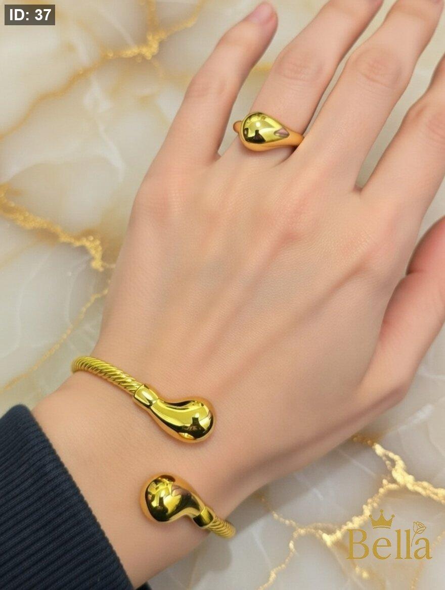 طقم مكون من اسواره بتصميم اللوزه وخاتم بتصميم اللوزه