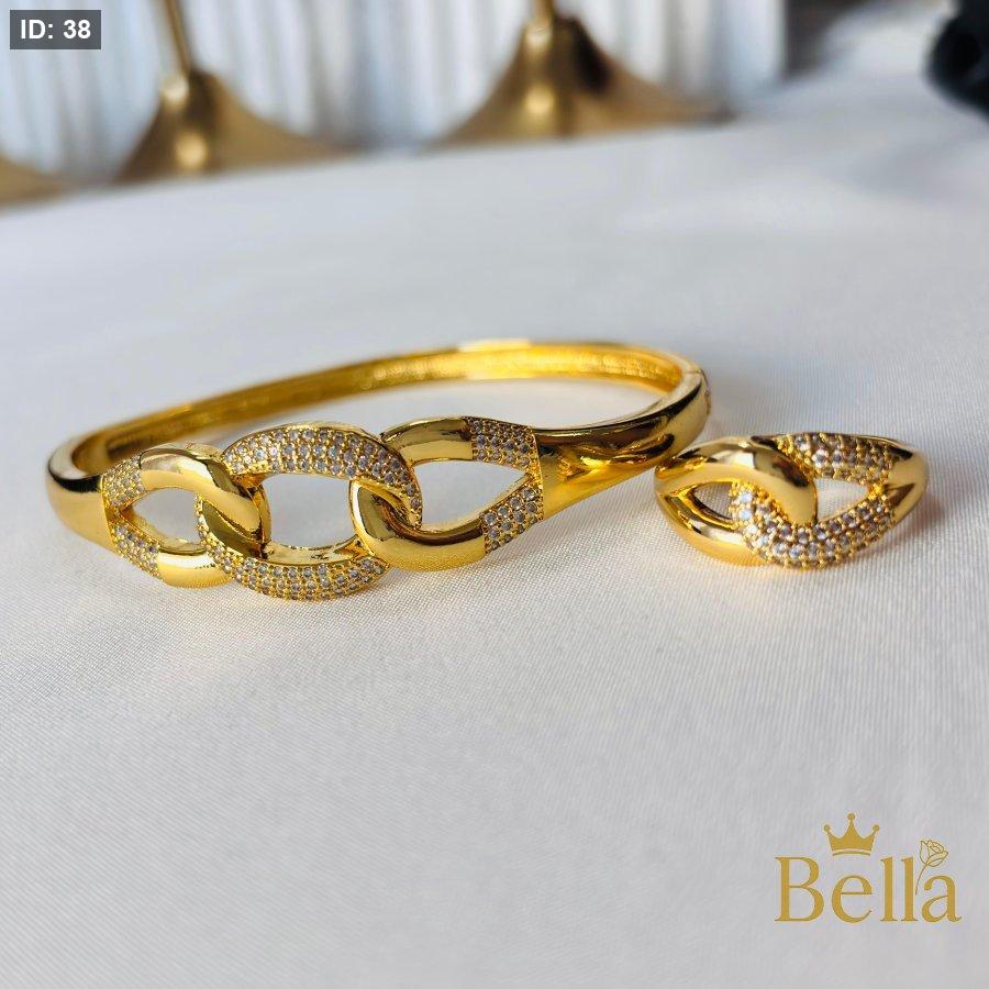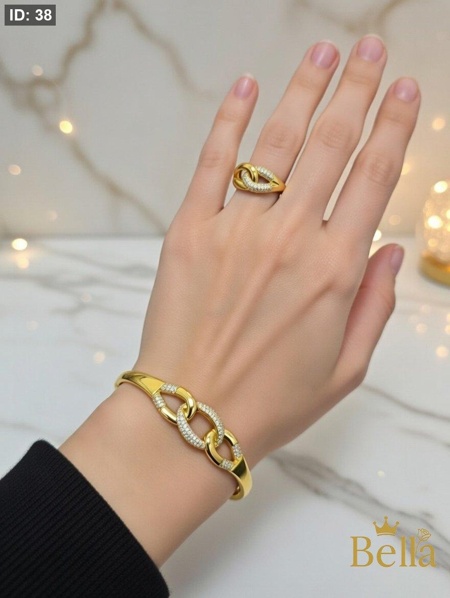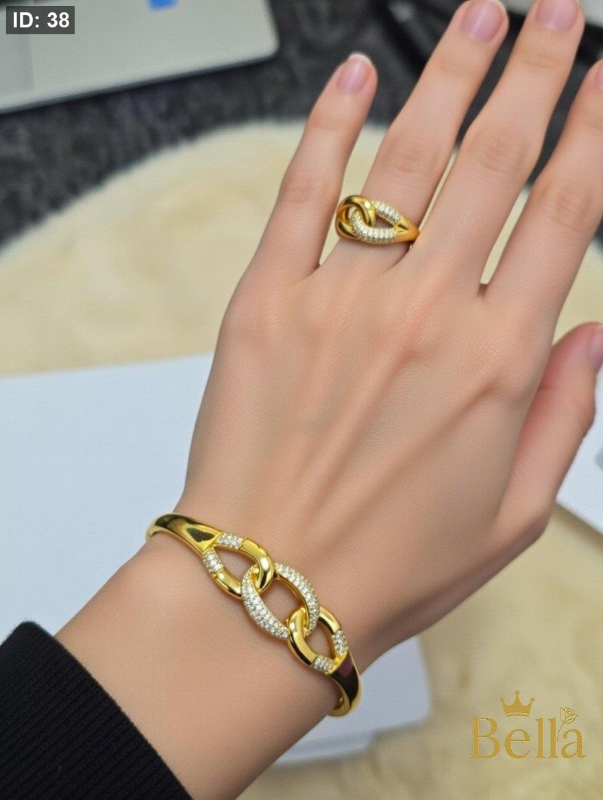 طقم مميز مكون من اسواره وخاتم مرصع بالزيركون الاصلي