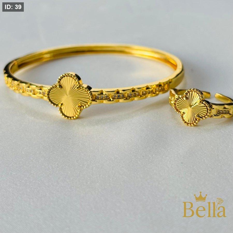 طقم مميز فانكليف مكون من اسواره فانكليف وخاتم فانكليف ذهبي