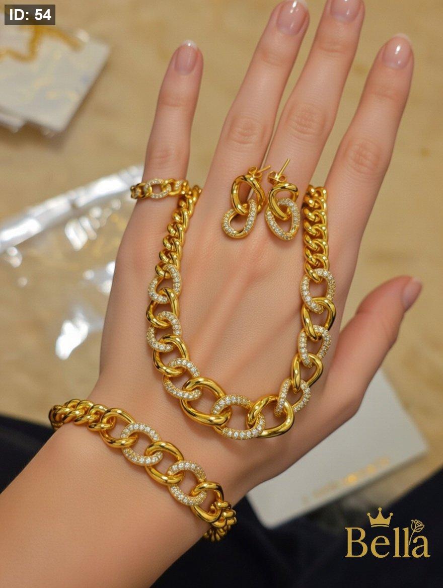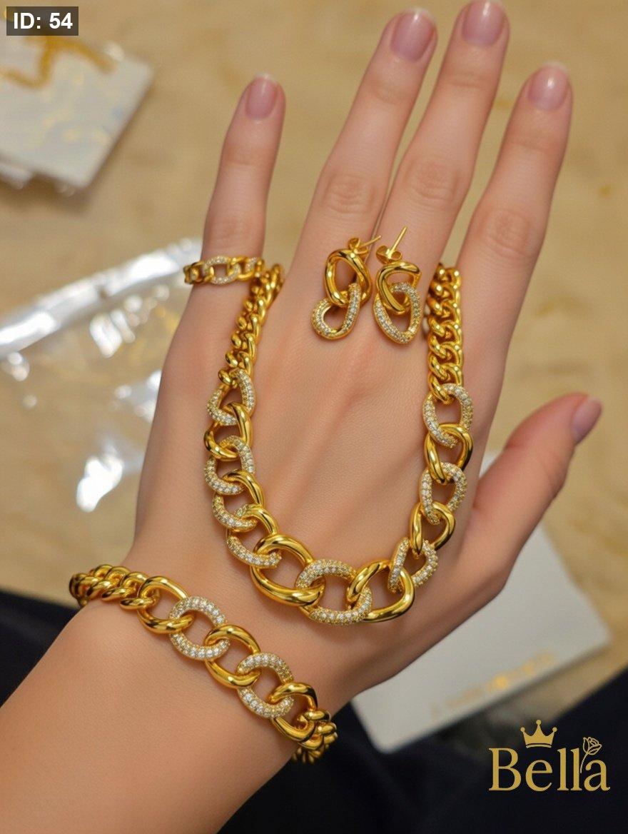 طقم جنزير فاخر ملوكي مرصع بحيبيات الزيركون الاصليه
