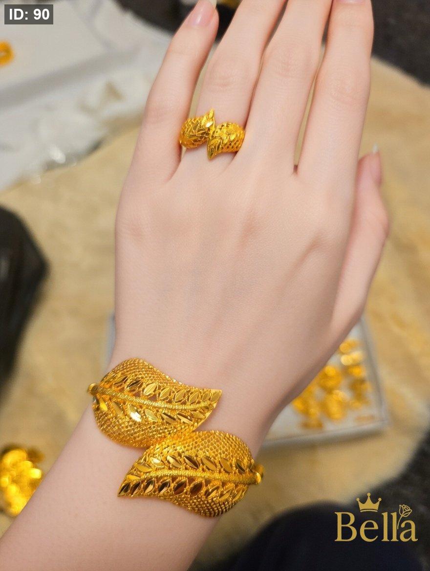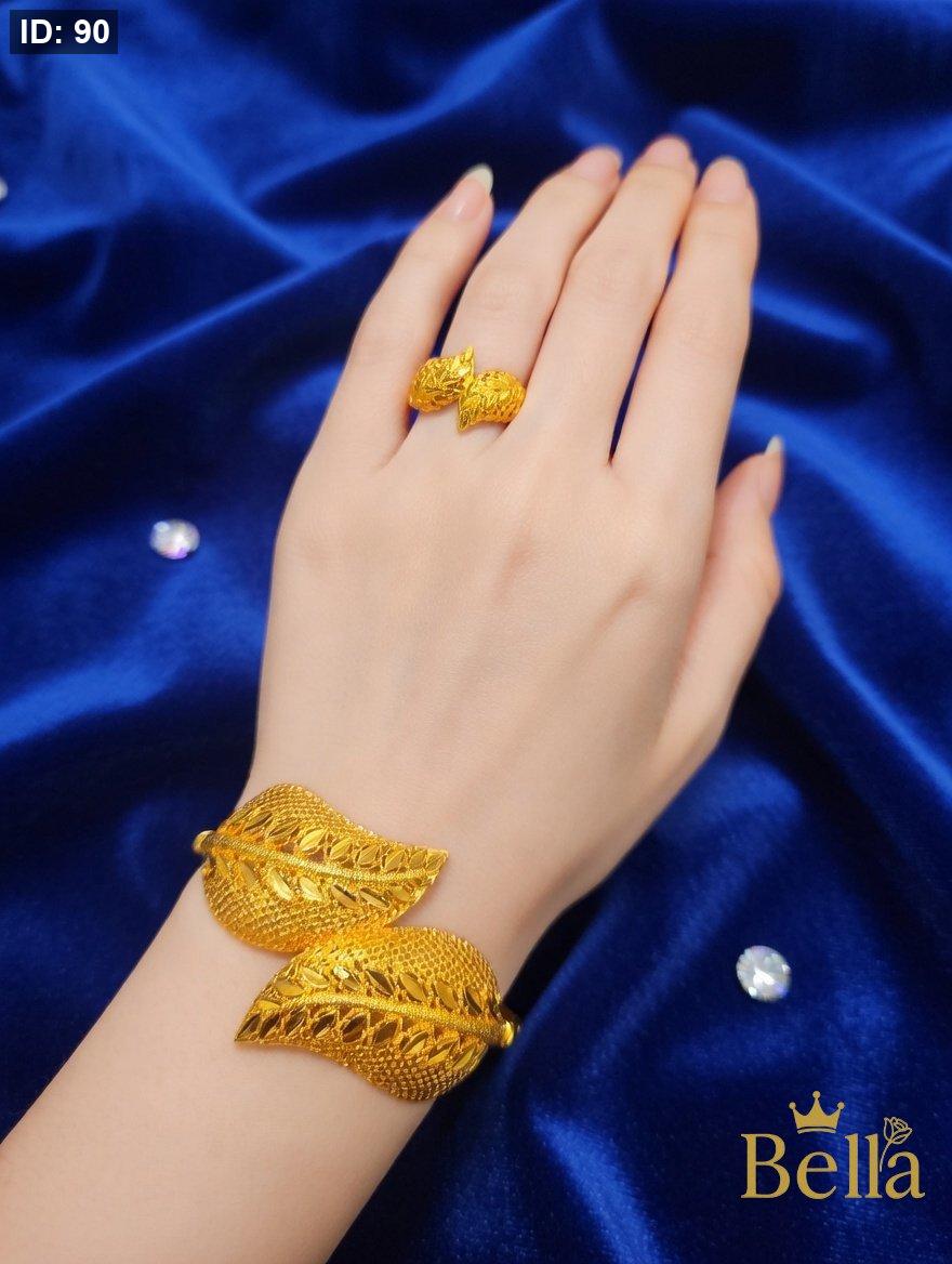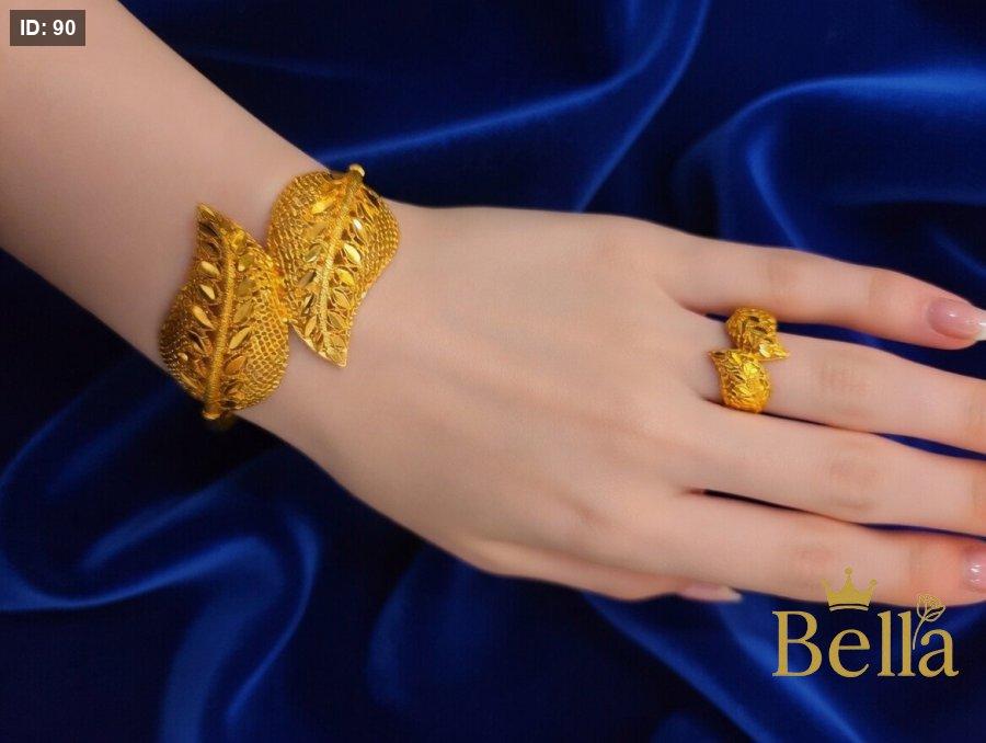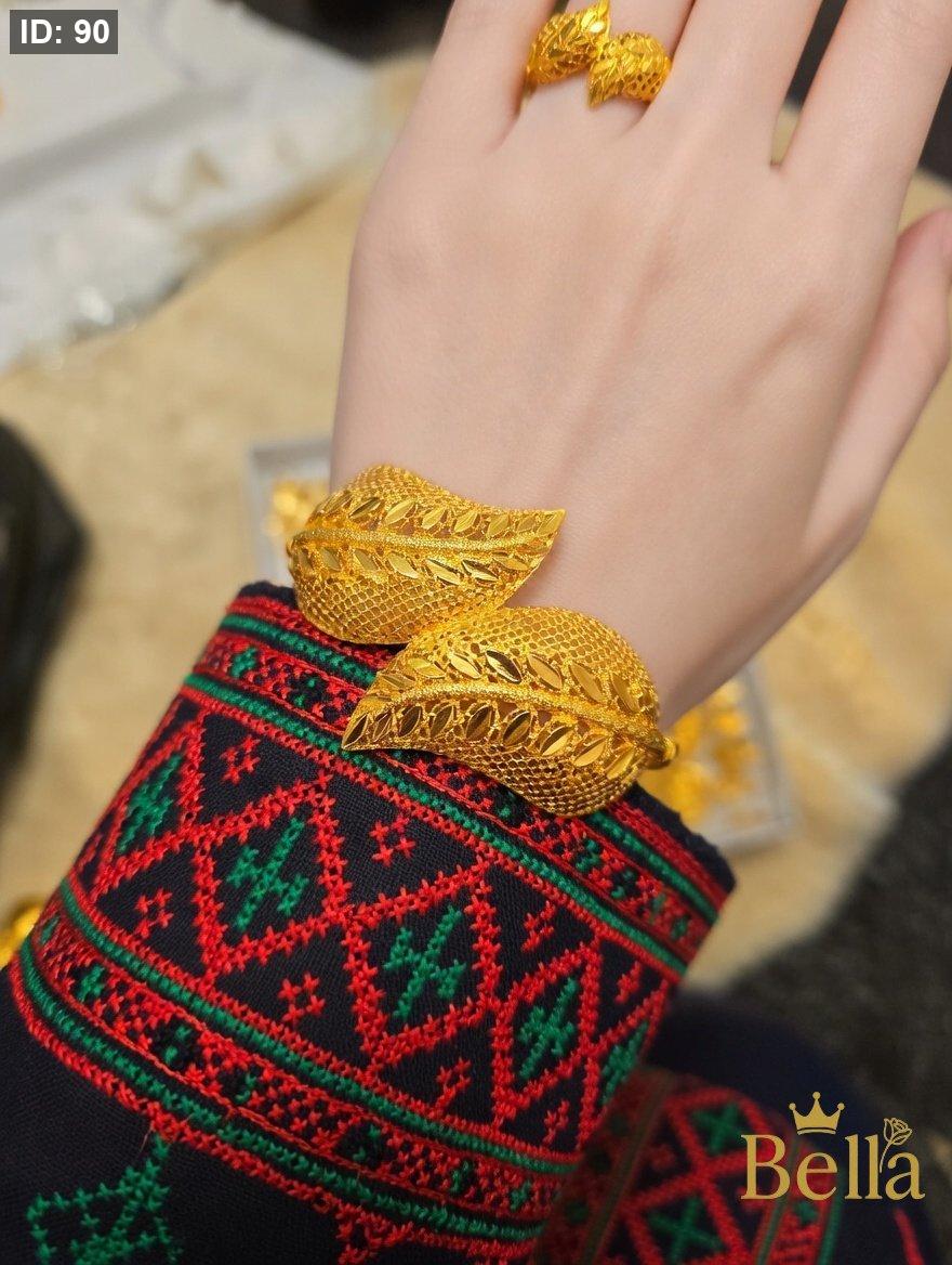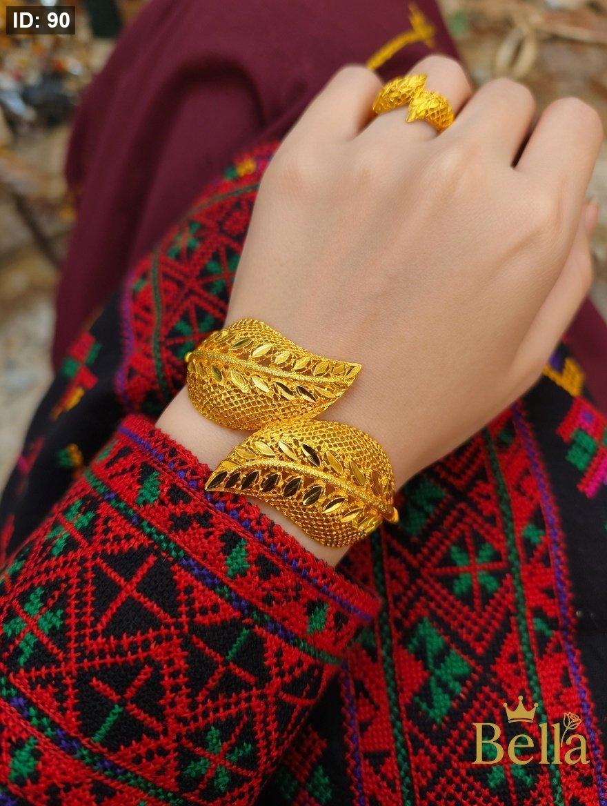 طقم مكون من اسواره بتصميم اللوزه نقشه السبله وخاتمها